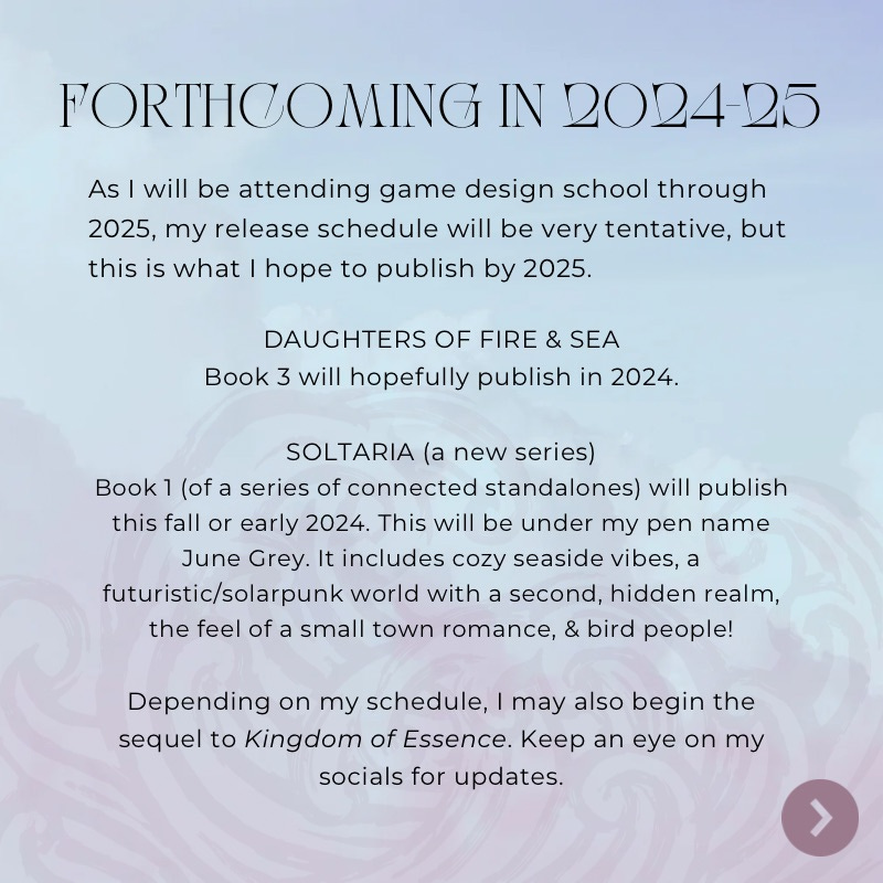 How are you doing? For me, it’s felt a bit like I’ve been sprinting non-stop since July and I’ve yet to catch my breath. In my last newsletter I said that I’d be reducing my emails to when I have actionable news, so I’m not certain if some of you missed my Instagram post about returning to school to learn narrative design for games. You can read the post at the link above, but the short of it is that The Demon Queen is regrettably pushed to 2024 (it’s the longest of the series so far!) and I’ve done a little rearranging of my publishing schedule.